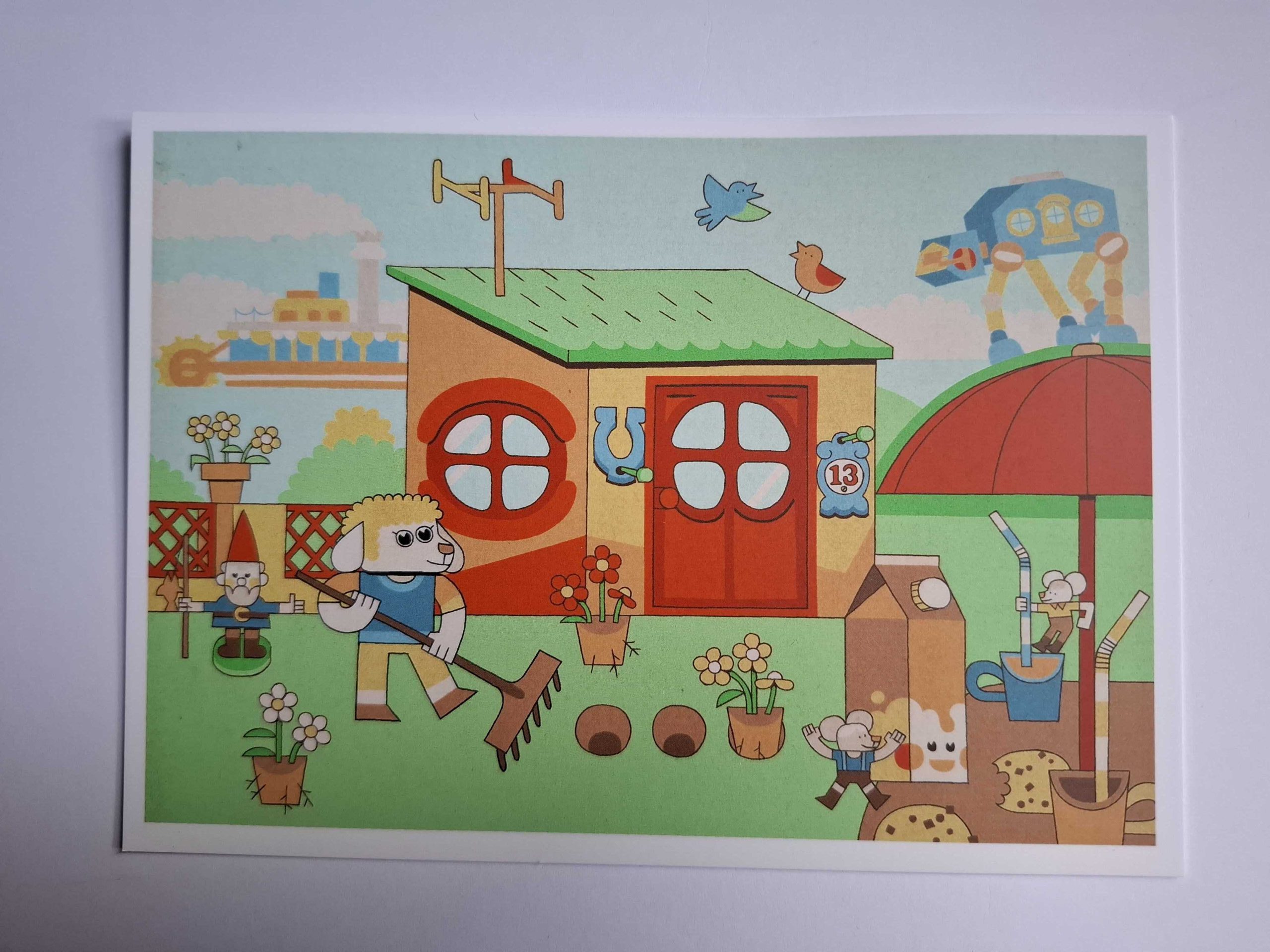 The cheeky mice feature in this beautiful postcard illustration that Stewart commissioned from artist Kornél Pittmann that I was lucky to receive at the event.