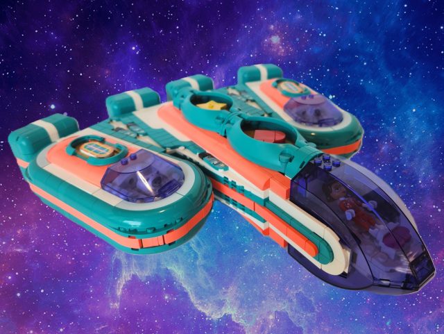 Brilliantly capturing both the aesthetic and the color palette of the Friends theme, Chad Rhodes first-ever entry is a sight to behold. This ship is smooth and sleek, yet feels like a true crossover for Friends and Space. The Star and Heart tucked away in the top of the ship is a perfect touch.