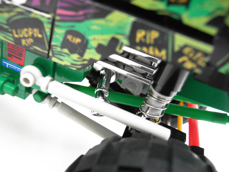 The highly familiar Misterzumbi has brought out another great vehicle (car? truck? monster???), the famous Grave Digger. The model is 100% pure LEGO, even the stickers (although they may be pushing the definition). It’s worth noticing the high level of detail in the shock absorbers and the rod and hand structure for the base.