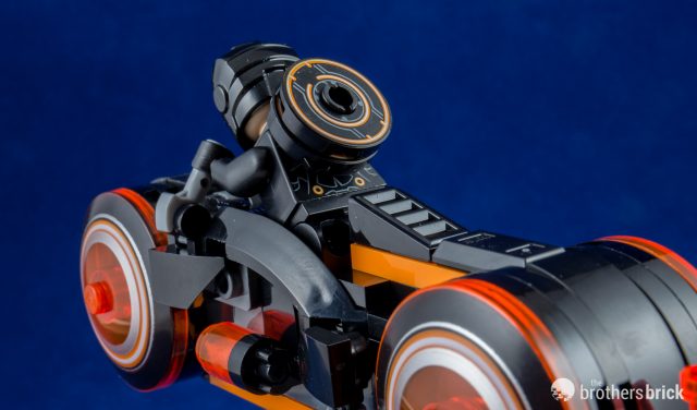 A second light bike certainly adds to the play and display value of the set, and the repetitiveness of the build is alleviated by how quickly you’re finished. The wheels spin fairly well on fabric, where the friction helps spin them, but the central Technic half-pin that holds the axle doesn’t spin as well on smoother surfaces without slightly adjusting the gap between the wheels and the bike’s body.