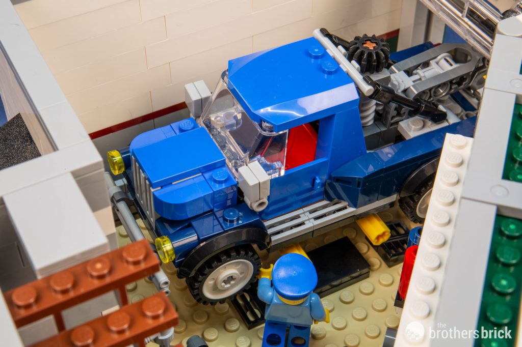 Nevertheless, I do share the opinion of LEGO builders who’ve expressed confusion about the juxtaposition of a vet’s office above a mechanic’s shop. As much fun as a vet’s office may be within the world of Creator Expert modular buildings (after all, where will pet owners take their pets after adopting them at 10218 Pet Shop way back in 2011?), I can’t help sharing the pain and confusion that the animals listening to constant banging and clanging must feel.
