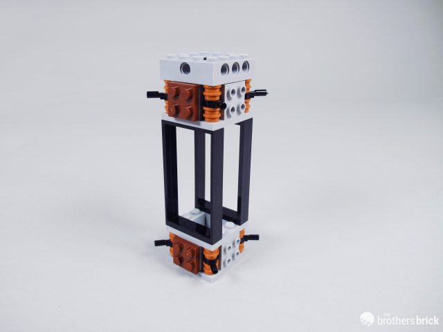 Notice how the exposed corners use the Bar with 1×1 Round Plate. This clever use provides the required angles to capture the cylindrical shape of the trunk. Technic liftarms are hidden behind long plates and slot into the Bar with 1×1 Round Plate.