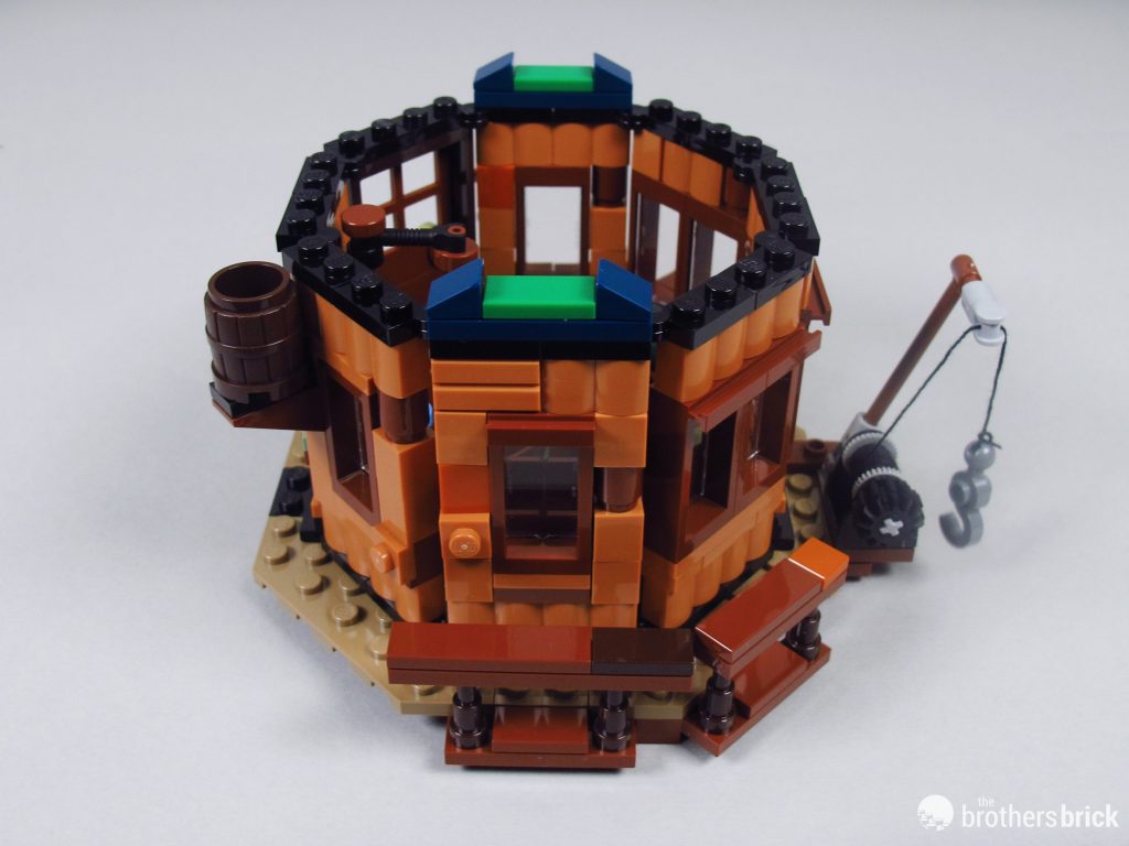 Although the cabin roof was designed to be removable, once the leaves were layered, it became less accessible and was actually an obstruction to role-play the minifigures in treehouse play situations. Thankfully, the designers thought of this and you can remove the top segment of trunk, taking with it all the branches and leaf elements and easily revealing the cabins for access.