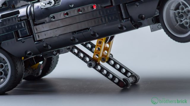 The official product description claims that the model is perfect for both teenagers and adult fans, which means that set is a playable toy and a great shelf model. However, combining both in one product is rarely a good idea. The Charger is not an exception. The lever engaging the stand is located in the middle of the car’s interior; reaching it is quite a challenge. And when the support is engaged, it really spoils the car’s iconic look. Was it just a display model, it could have been equipped with a more stylish and discreet stand, which can be designed using robust Technic connectors.