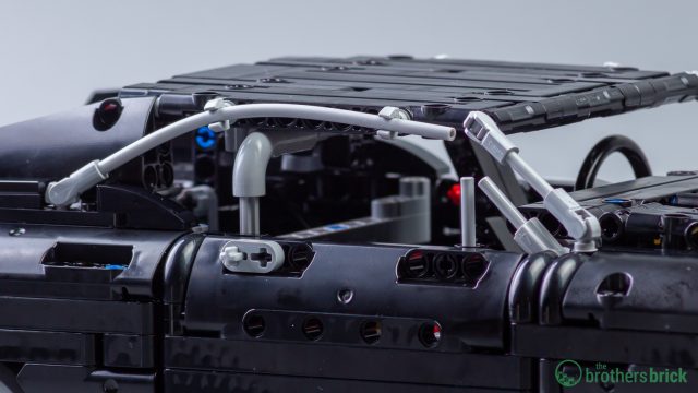 No doubt, the design of the rear of the Charger is on the whole other level. The taillights made of transparent red tiles look stunning and much more realistic than those of 42083 Bugatti Chiron set, which were of solid red color.