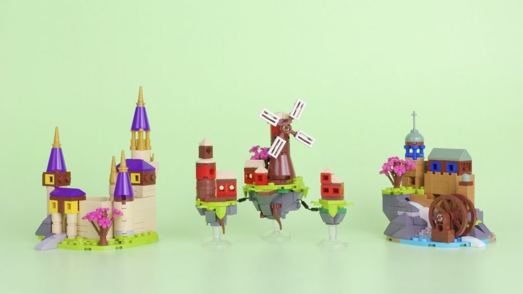 I loved chivalrous romances and fairy tales as a kid, and as a teen, I delved deep into epic fantasy novels, so it should be no surprise that as an adult, my primary building interest in LEGO has been the castle theme. It seems that Aaron Newman‘s primary interest has also been castle, as his earliest builds are castle builds (and he designed his own unofficial castle theme). Now, he’s a top-notch builder, and he’s branched out into every other theme over the years, but it’s always nice to see someone returning to their roots in an impressive way. These miniature castle scenes are just that. I can’t decide if I like the floating village with a windmill or the picturesque watermill the best, but they’re all stunning.