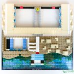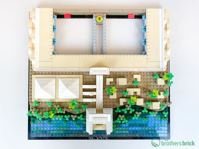 The build is split evenly between bags 1-4, which build the base, the Nile shore, and the various outbuildings, and bags 5-8, which build the Great Pyramid itself. The base comes together similarly to other Architecture sets and the large Stadium sets. A combination of large plates, long bricks, and tiles build a sleek frame for the diorama along with the under-structure for the river.
