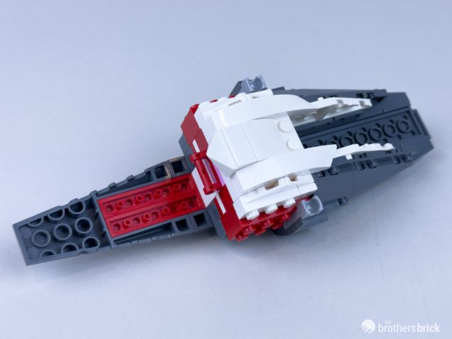 The bow is filled out by building on the brackets, including some slopes and complex bow elements – thanks for those also, Speed Champions – along with tiles and black and dark red bows.