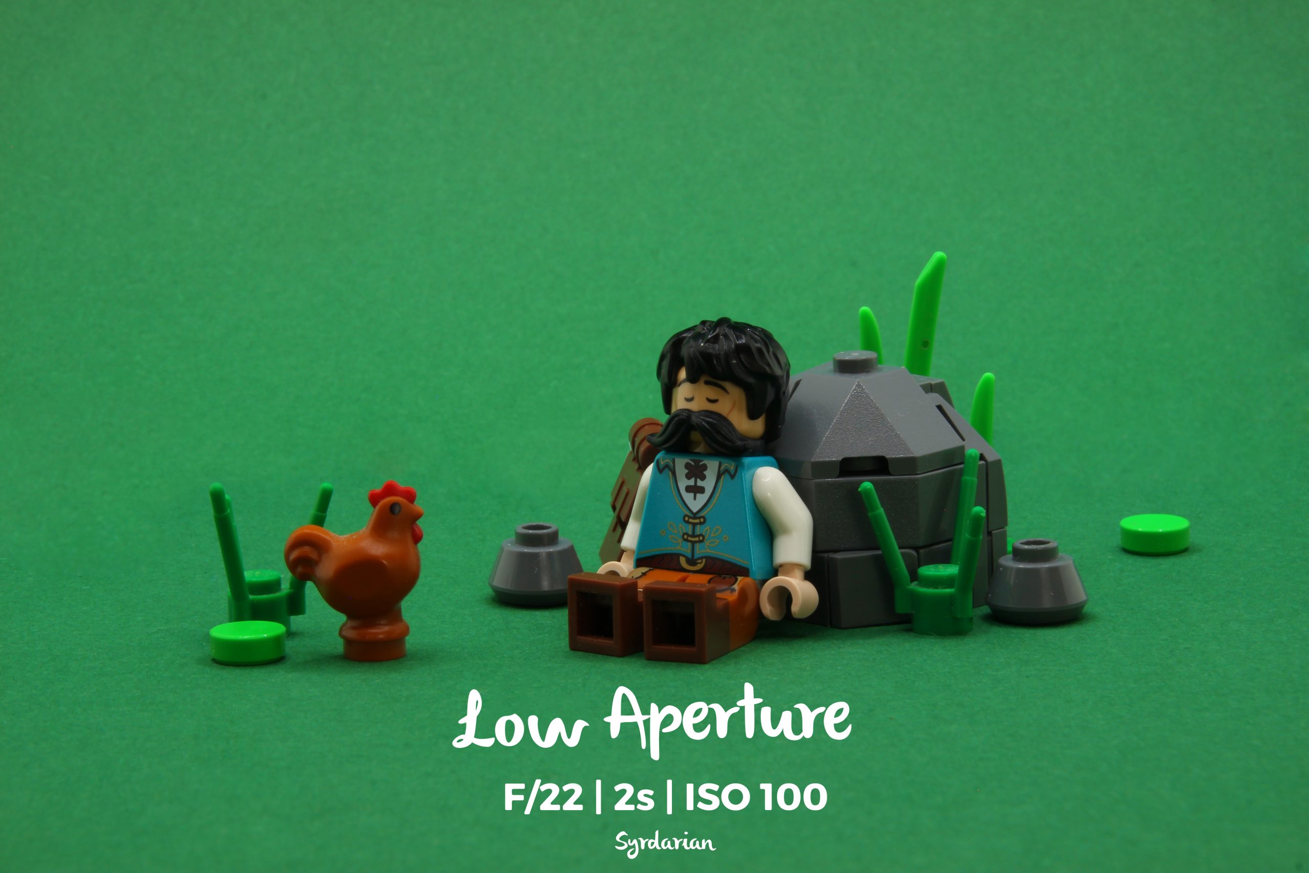 Exposure will depend on the aperture and ISO you choose, as well as the amount of light around your MOC. The higher the exposure, the greater the risk of camera shaking is, making your picture blur.