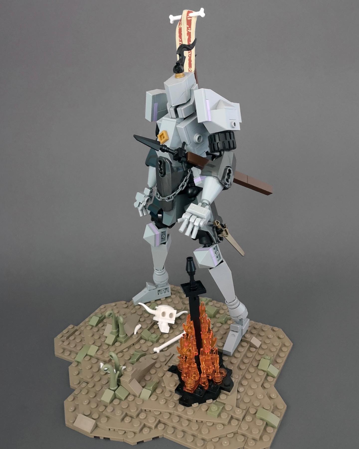The dark fantasy worlds of FromSoftware’s games have been a huge influence for many AFOLs with their bold character designs, ornate gear, and haunting medieval settings. Builder panc4kez has been creating LEGO models inspired by From’s genre-defining Dark Souls, which perfectly translate the game’s aesthetics into brick form. After months of individual construction, Dark Sun Gwyndolin, The Nameless King, and Dragon Slayer Ornstein appear together in LEGO.