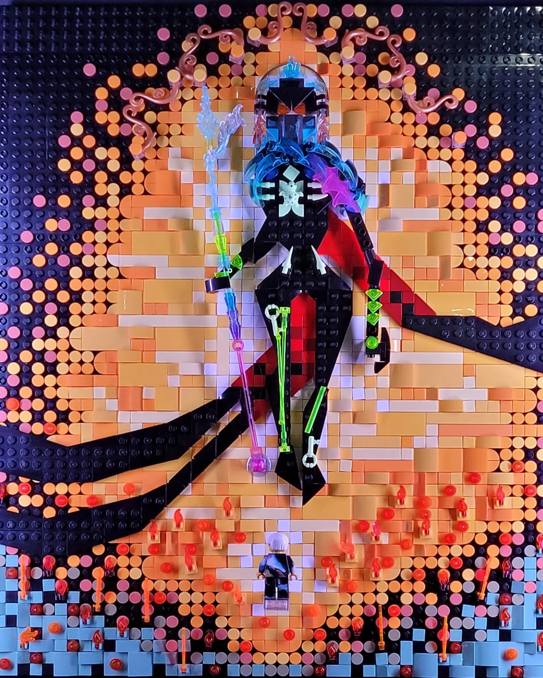 Over two seasons, the Netflix series Arcane brought the fantasy world of League of Legends to life in gorgeous animation. Like many, builder craftingcorrine wasn’t ready to let go after the final episode aired, so she turned to LEGO to recreate Viktor’s Glorious Evolution. The colors are gorgeous, matching the rich, painterly tones of the animated series with layers achieved by the use of transparent elements. I love the blend of mosaic and character model rising from the tiles and the clever parts usage, like a baby Friends turtle on the god-form’s chest. As a multi-media artist, Corrine painted a custom Jayce minifig to match the scene.