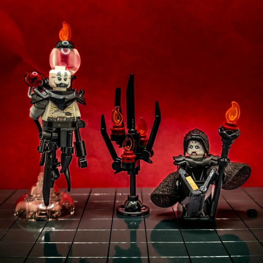 Brickbot_studio turns up the terror with Inquisitor Malchuron and Archivist Seralyth of the Pale Sept. Malchuron’s cyborg body is built in gruesome detail, but my favorite technique might be that crowbar candelabra.