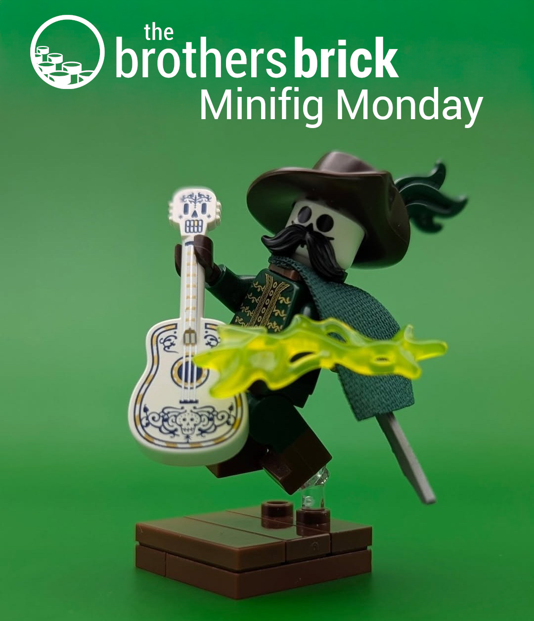 ASortaOkayBuilder kicks things off with Manny, the skeletal bard. Equipped with Héctor’s guitar from Coco and a trans neon green ectoplasmic flourish, this swashbuckling is the perfect minifig to lead us to the lands of the dead.