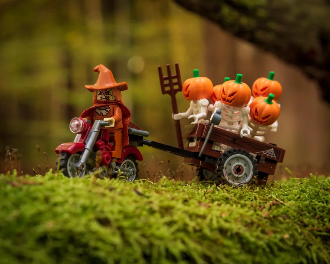 Toy photographyer Michał Szymel gets spooky season rolling with a cart full of pumpkin-heads. It’s always a delight to see minifigures out in the wild, especially in the fall, and few are as good at capturing them as Michał.