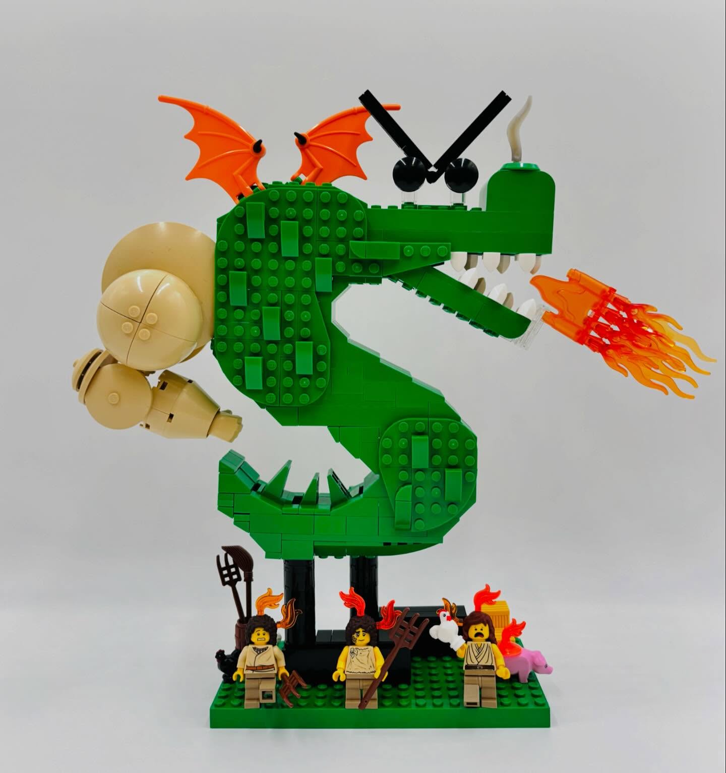 In the pantheon of great dragons, you have Smaug, Falcor, King Gidorah, Toothless, and of course,   Puff the Magic, but all of these legendary beasts pale in comparison to the greatest dragon-man of all: Trogdor, the Burninator. Trogdor was introduced to the world back in 2001 with Strongbad Email #58, one of the greatest memes to arise from the pre-social media internet. Builder Grant Holyoak recreates Trogdor with all of the dragon’s essential features – smoke, fire, wing-a-lings, spinedies, and angry eyebrows. He even includes peasants mid-burninating. My only nitpick is that there aren’t enough consummate Vs!