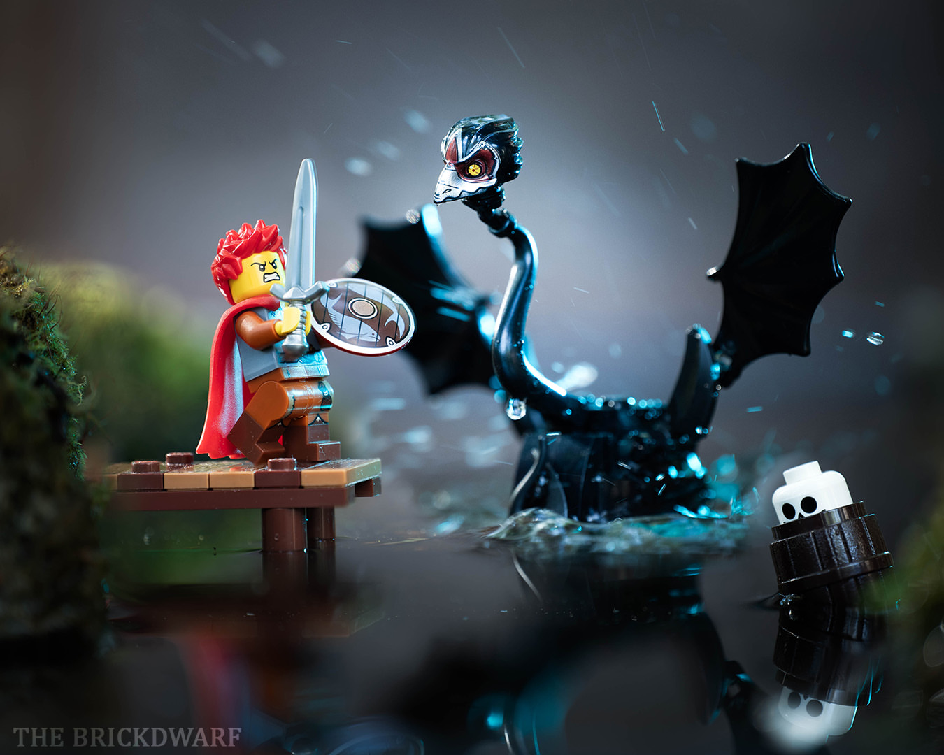 thebrickdwarf photographs a warrior who could use a getaway boat right about now. The black swan beast from the realm of the dead is quite terrifying with that Chima crow head on a tentacle neck.