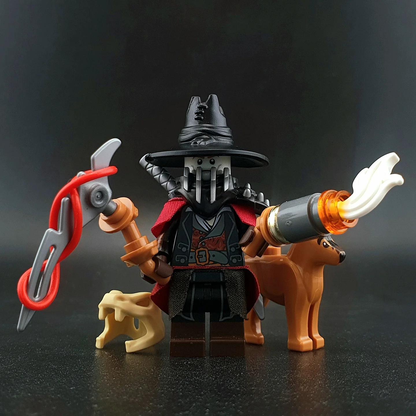ExpansionBricks is ready to fight the forces of darkness with a witch hunter armed with a bloody scythe, an anti-hex flintlock pistol, and, most importantly, a very good dog.