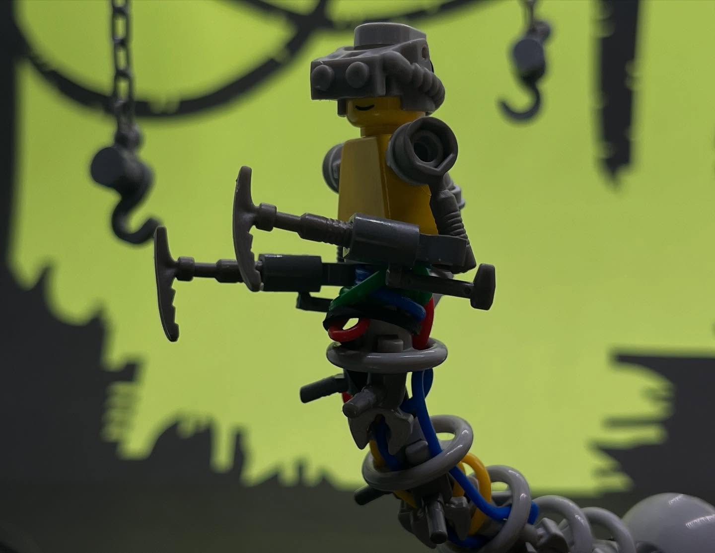 fish.buckle goes full body horror with the Artificer, a monstrosity of metal and wires crafted to a flesh torso. The retro LEGO minifig smile peeking out from under the visor is the creepiest part of all.