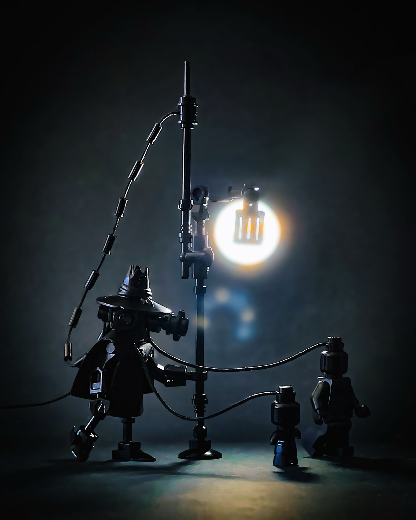 Speaking of “playign with shadows,” our friend Jacob Manahan (jdmbricks) shares one of my favorite builds of his to date where a mysterious dark being walks leads tethered shadows by lamplight.