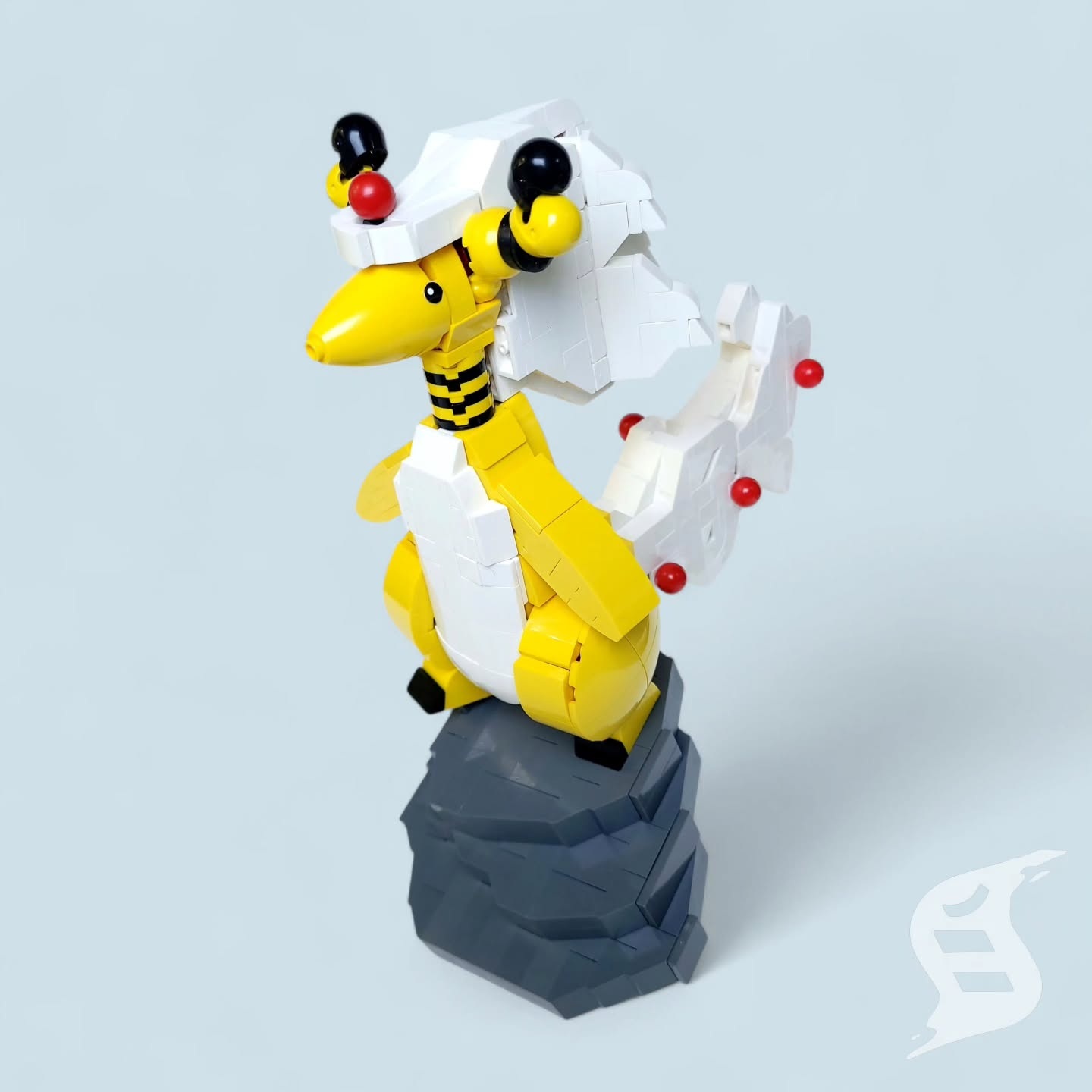 What happens to Ampharos when it Mega Evolves? It gets fabulous hair! I love that for the Electric/Dragon type. Daniel Olvera (@danielbrickson) captures that bushy glow-up in bricks, the standout technique here has to be the horns made from interlocking space helmets.