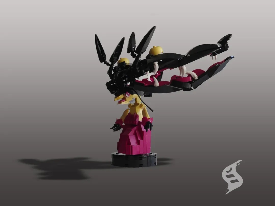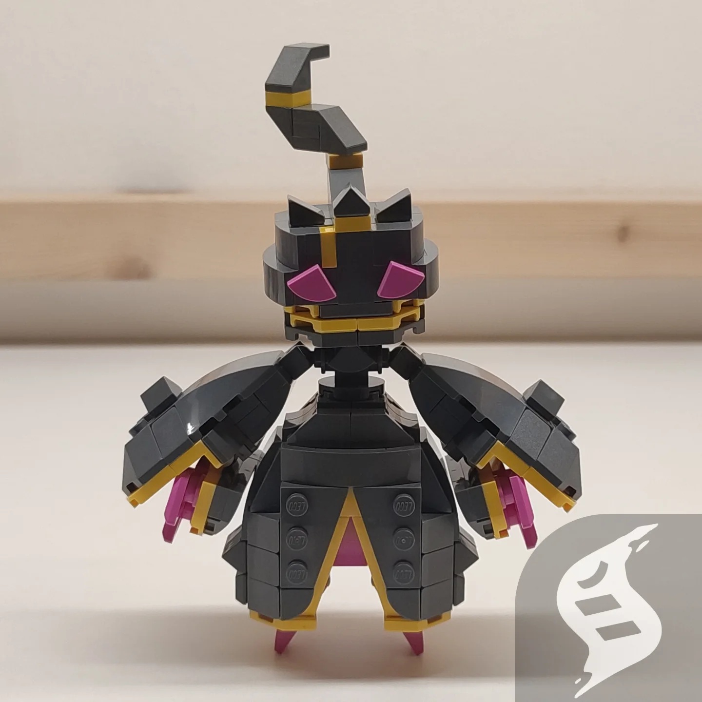 @margits_mocs dares to build the Mega Evolution of Pokémon 303, Mawile. This deceptive critter uses its cute face to catch foes off guard, then chomps them with the steel horns on the back of its head that form a fearsome maw. Margit’s model reallly captures the nightmare potential of that second mouth.