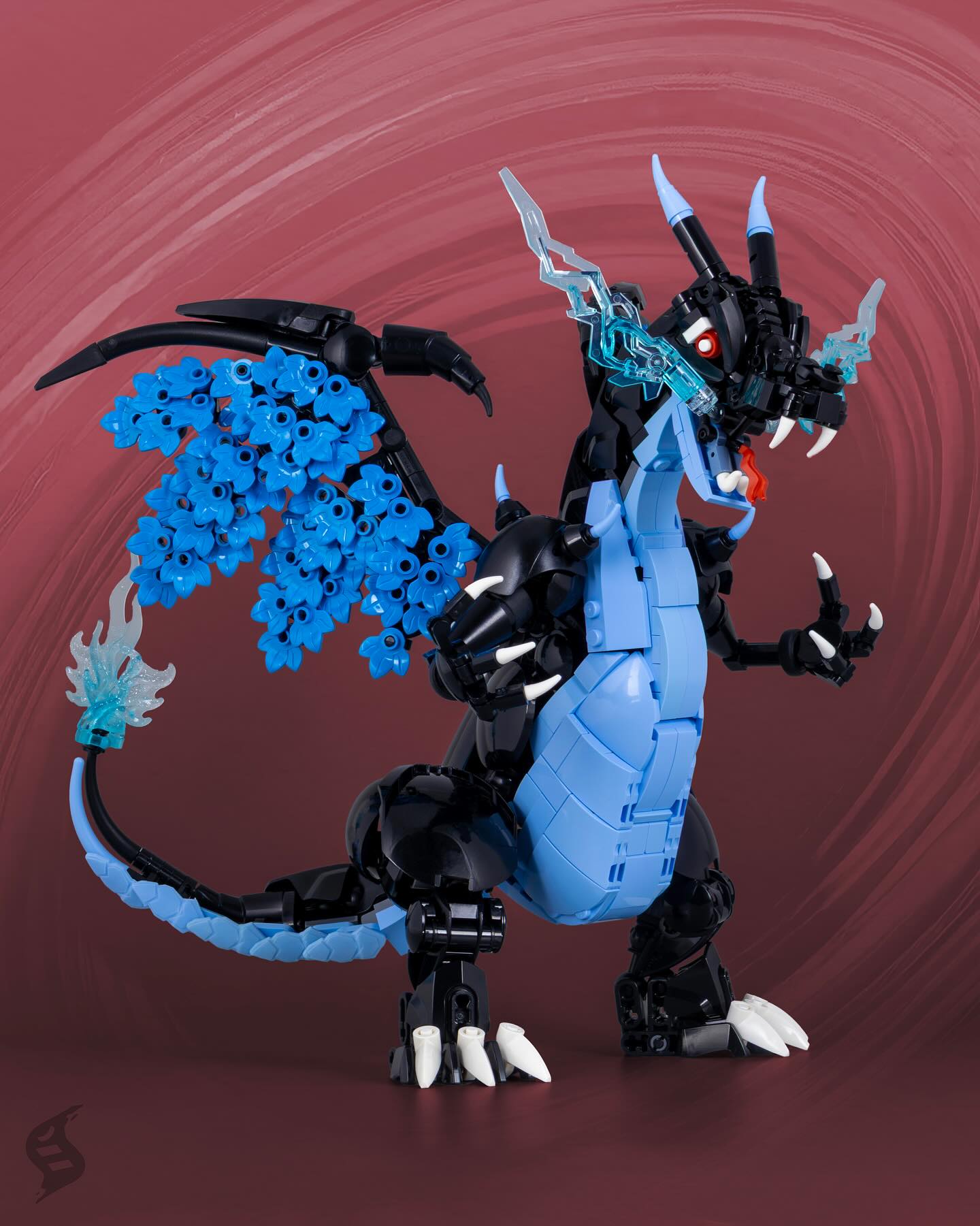 First up, from Matt Goldberg, we have the Mega Charizard X, an evolution of Charmander so smoldering with power that he burns blue. The head is wonderfully sculpted and the body has the right mix of cute and fierce. My favorite technique is the use of Ben 10 scales on the underside of the tail, a part I couldn’t recognize without reading Matt’s description of the build on his blog.