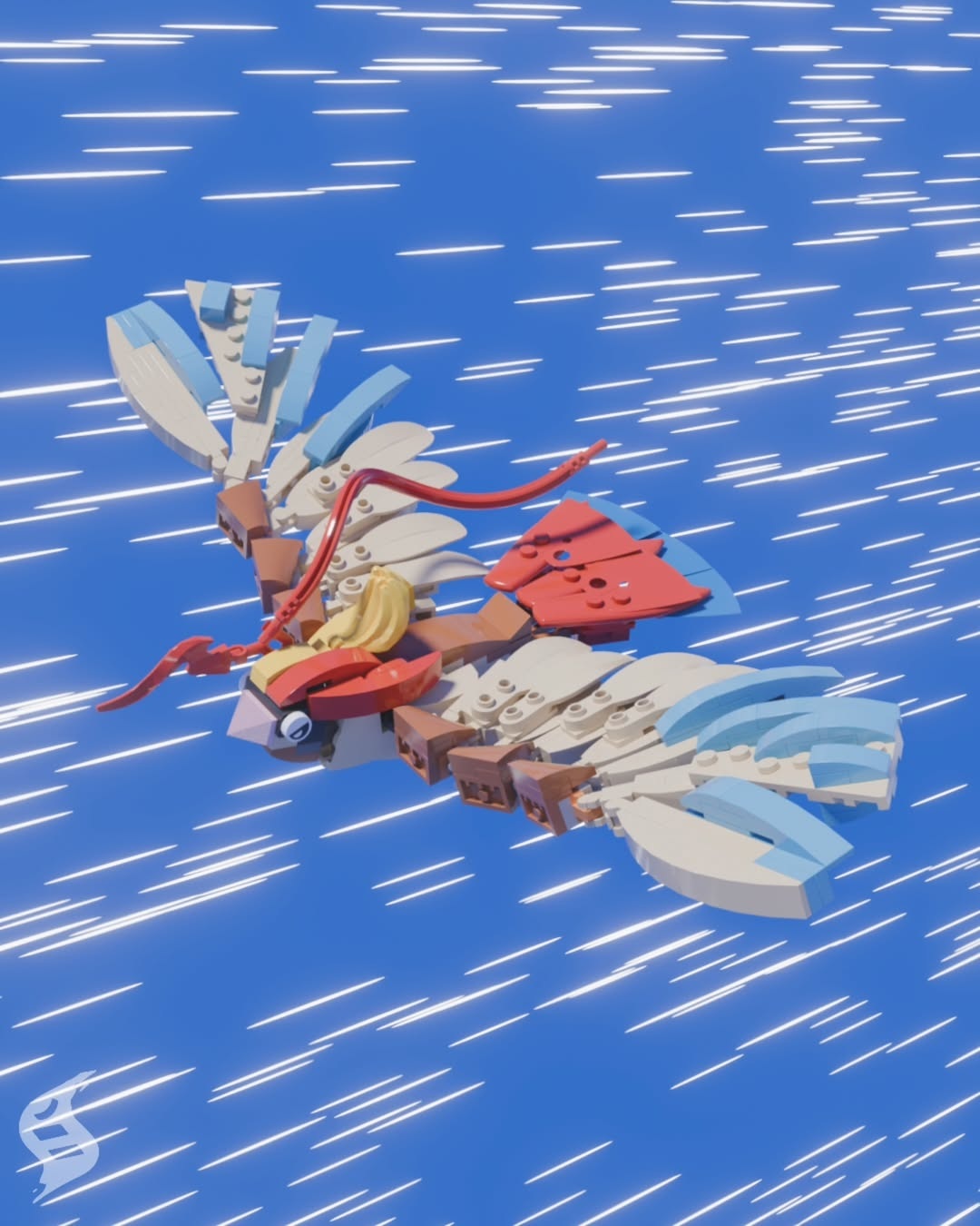 @curiositybricks captures the full potential of a humble Pidgey with Mega Pigeot. The model packs some great parts use, like cloth capes and surfboards for tailfeathers.