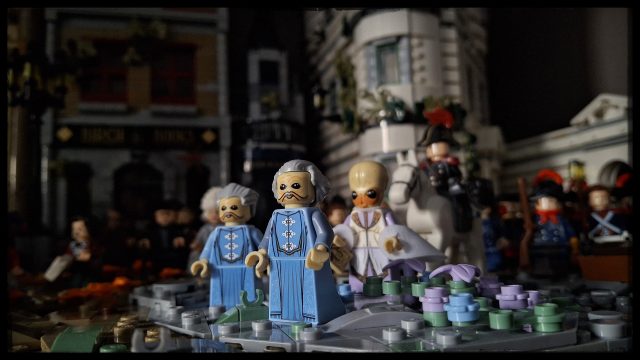 Alexander: When creating MOCs, I rely on free creativity, but I always keep references in mind. When creating Plague City, I studied Baroque, Rococo, and Classicist architecture, and I compiled an entire album of 18th-century cityscapes (mostly from France), as well as a separate folder of church and cathedral facades. I tried to make the buildings as authentic as possible, and in fact, Plague Town accurately reflects the average appearance of a European city in the 1790s, but it also incorporates fantasy elements that enhance the contrasting atmosphere.