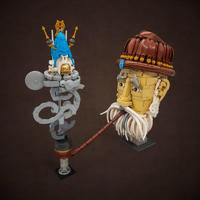 Declaring that “An architect’s dream is an engineer’s nightmare”, Roman brings this premise to life in LEGO form. Appropriately for the subject, the construction itself features some incredible engineering and wonderful parts usage throughout all sections of the build. Some of my favorites are the Ninjago dragon head, hammers, binoculars, and visors that are used in unconventional ways in the artist’s billowy smoke imagination. The dreamer himself is excellently shaped and topped off with a hat comprised of leaves, broomsticks, and an entire boat. A wonderful tribute to this architect’s fantasies, brought to life in bricks.