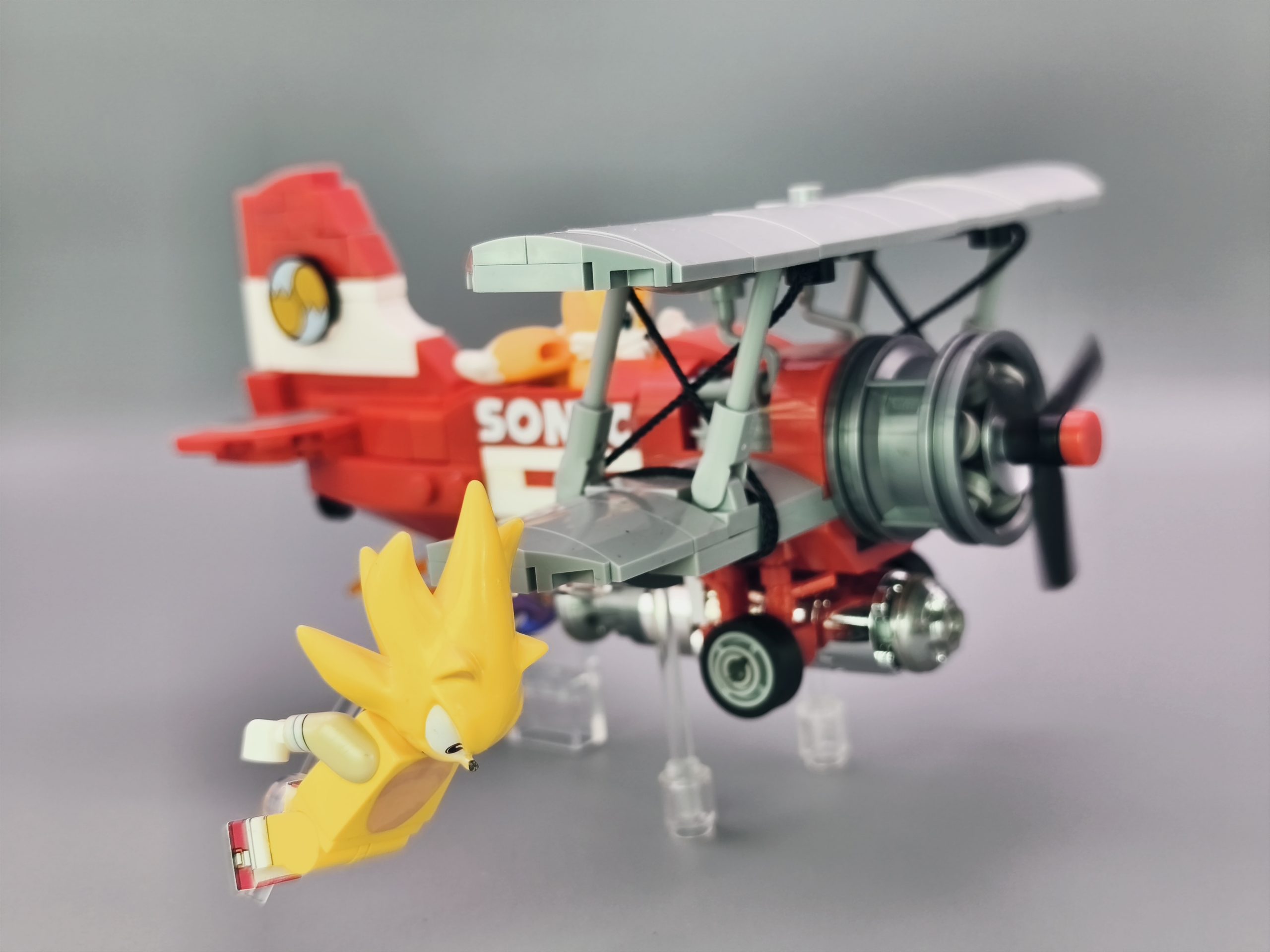 SEGA mascot and Jim Carrey foil Sonic the Hedgehog has inspired a dashing run LEGO sets, enough that Sonic’s beloved biplane, the Tornado, has appeared twice – as part of a Dimensions level kit and in a playset for younger builders. What LEGO hasn’t offered is a version of the Tornado built with an aviation enthusiast’s eye for detail. Thankfully, vehicle builder and Genesis-era Sonic fan Sérgio Batista proved more than up to the challenge! Sérgio builds the biplane as it appears in Sonic 3 & Knuckles, outfitted with Tail’s turbo boosting rocket in lovely chrome.