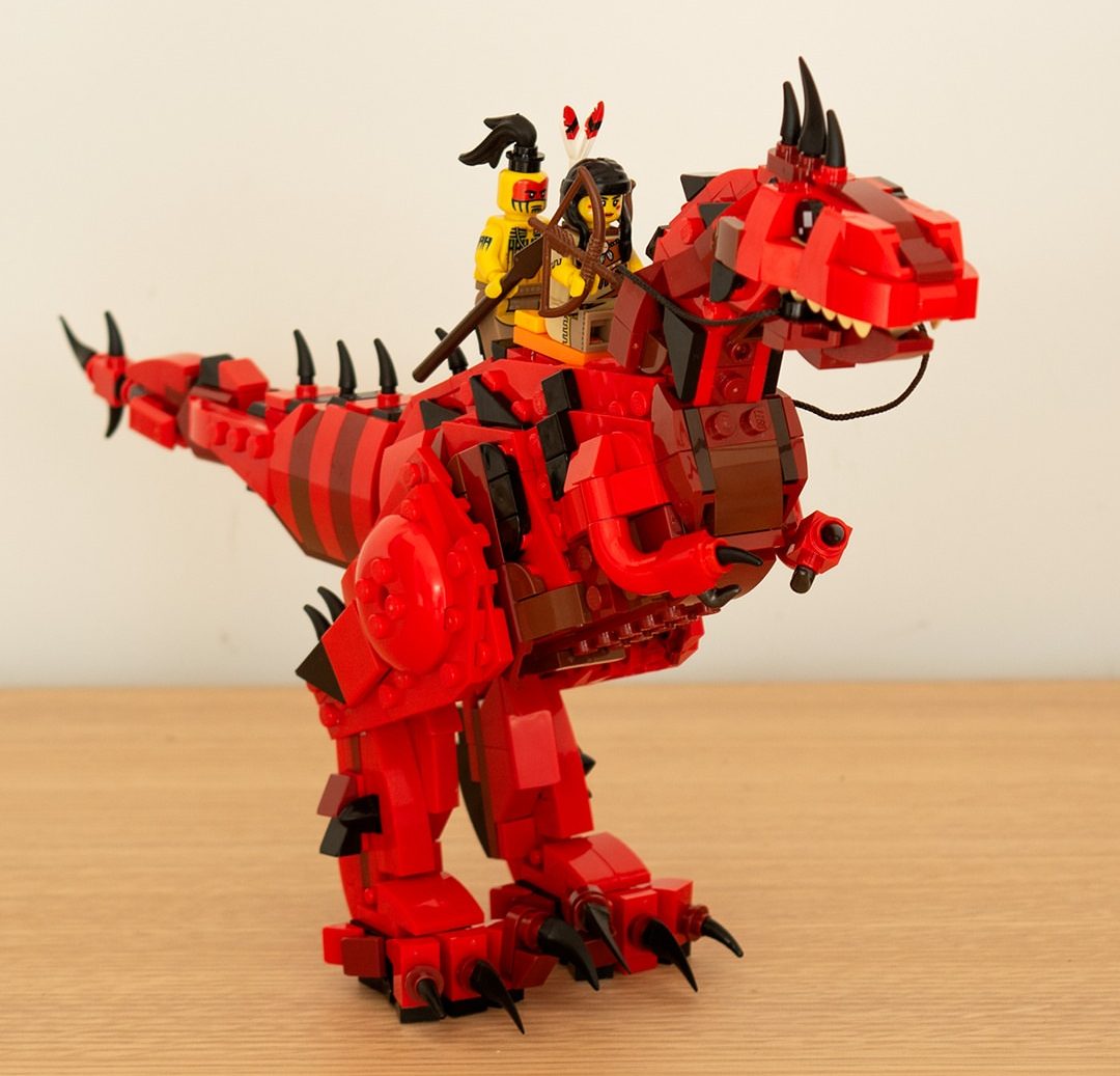 Next up is the Red Raptor tribe where a pair of indigenous minifigs ride atop their prairie raptor. Again, the dino design is a lot of fun with its wide mouth and copious spines.