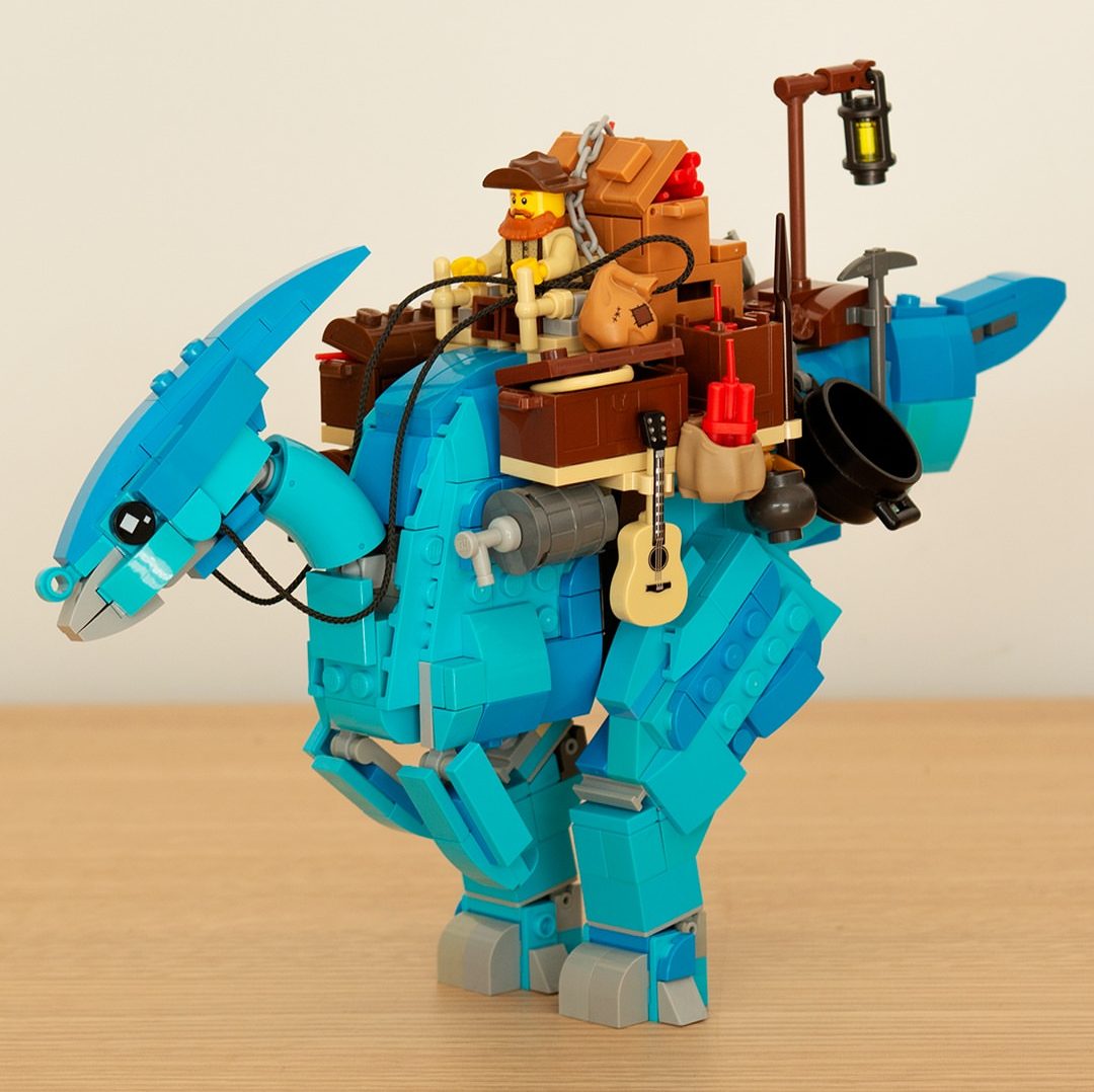 Cowboys and Dinosaurs are the perfect B-Movie pairing (don’t believe me? Watch this clip of Valley of Gwanji from 1969). Builder Martin Dasnoy agrees as he wrangled up a trio of dino-riding Wild West factions. First up, “The Law” features an armored transport wagon pulled by a beefy ceratopsian. The dinosaur design is ingenious, with a fully brick-built head on a molded body that has been augmented for a more cohesive LEGO look. I like this approach more than the Jurassic-branded dinos that only use a few large molds.