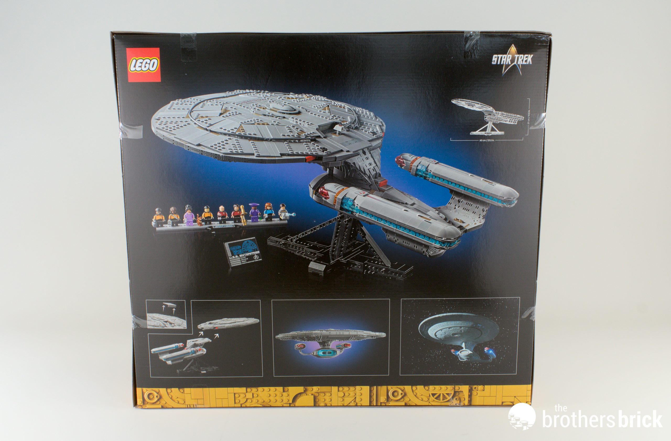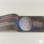 At first glance the box seems like the same familiar black background that we see on so many sets these days. But look closely, and you’ll see there’s actually a starfield behind the Enterprise. It’s like a scene straight off the telly!