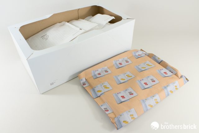 Inside, 31 bags, the first 15 of which are in a separate box. So, too, are the instructions and sticker sheet.