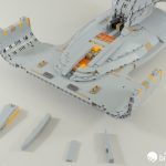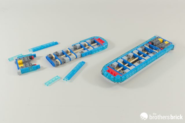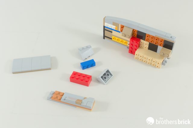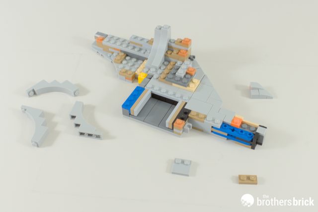 Our build starts off with the engineering section at the back of the ship. It doesn’t look like much to begin with, and there’s so much sideways building it’s difficult to get your bearings.