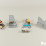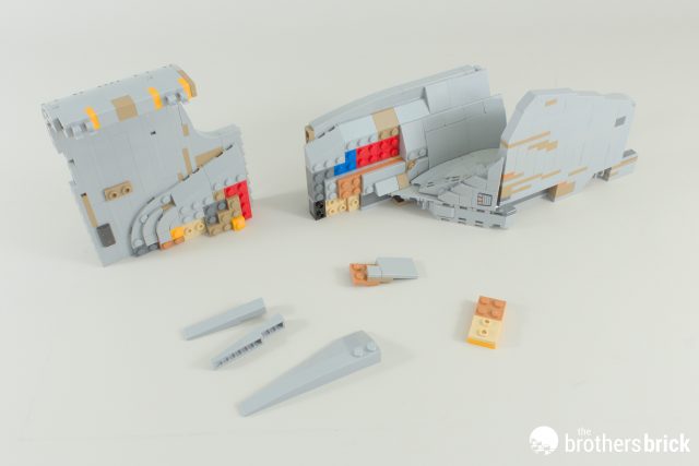 But once we start attaching some of the many curved slopes around the outside, we can get a clearer picture of what we’re making. The sticker for the shuttle bays – which you can see on the right – help to confirm the orientation.