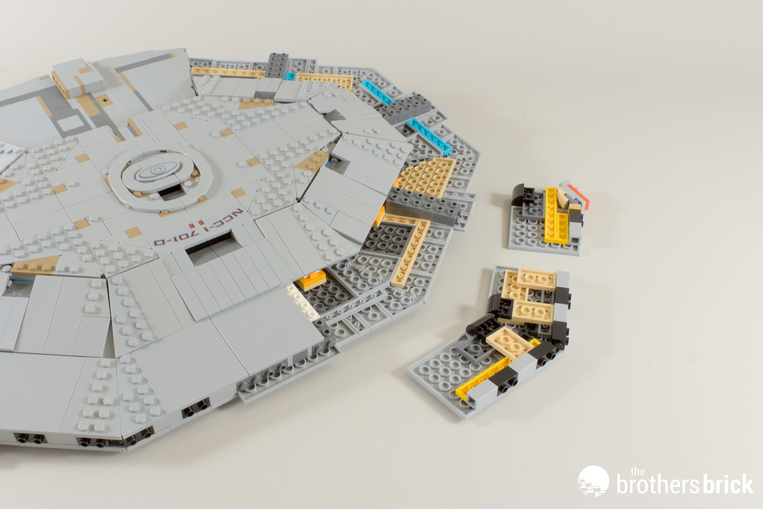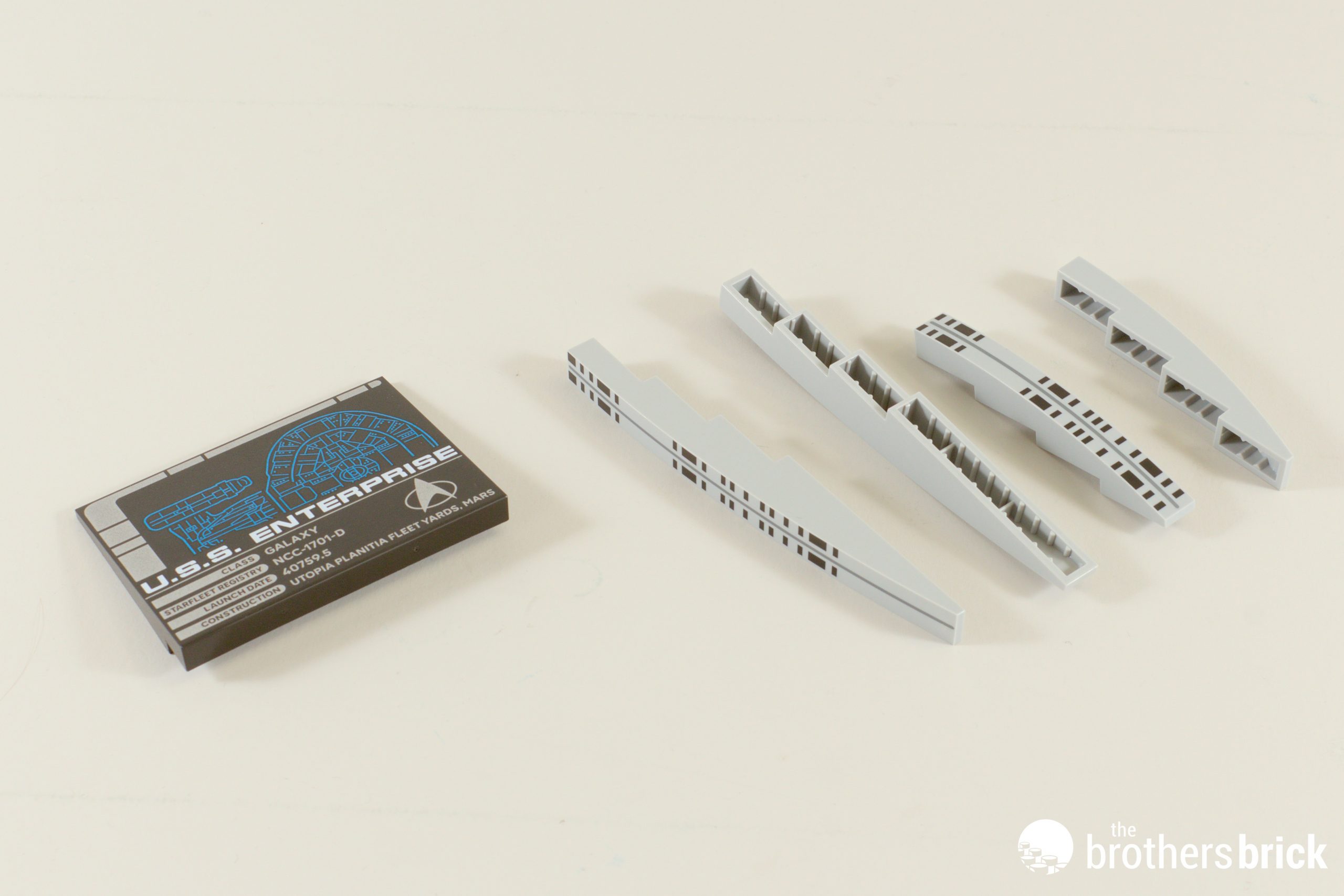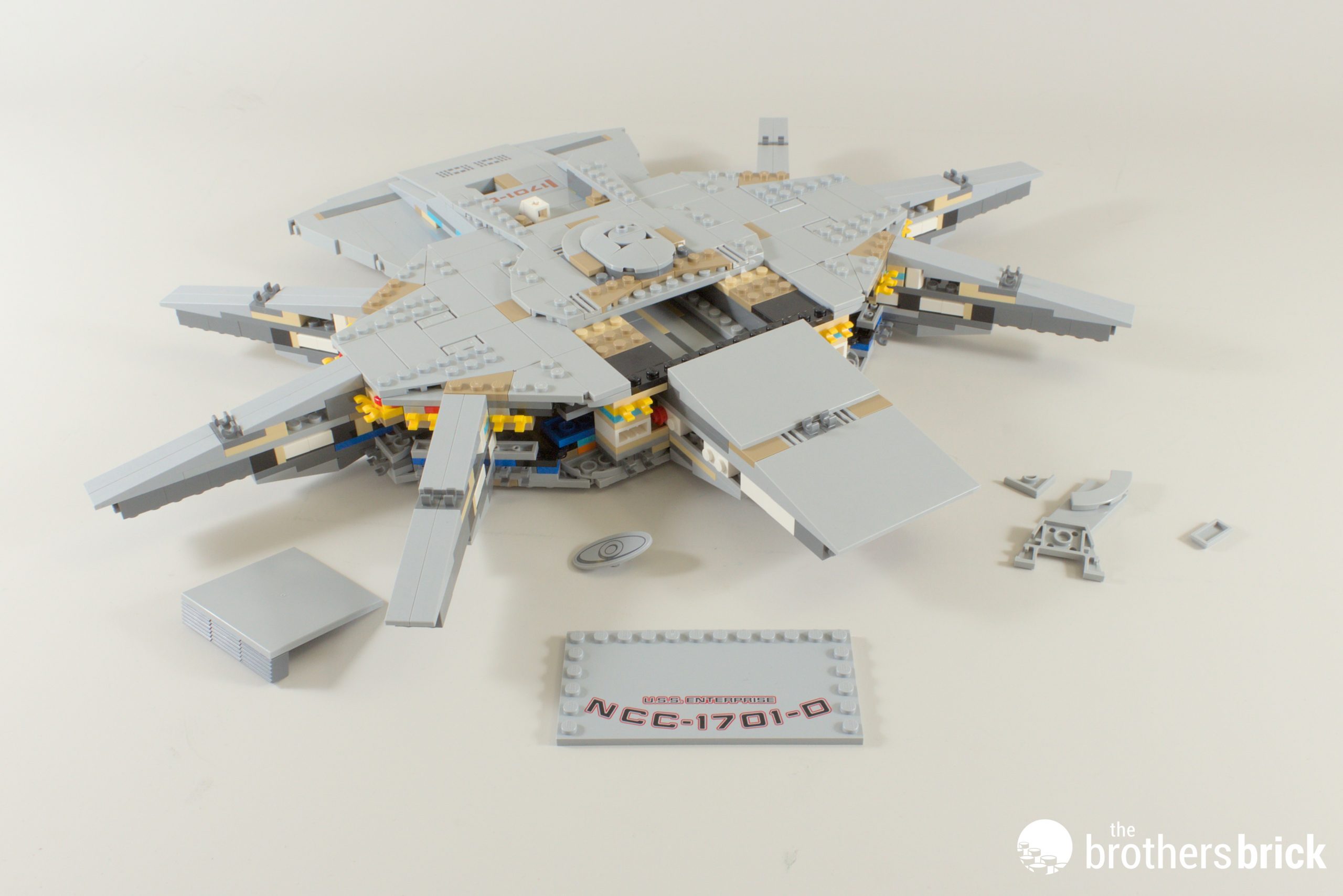 You may have noticed a few stickers going on here and there, but the Enterprise’s full designation is printed on a 6×10 tile, taking pride of place at the top of the dish.