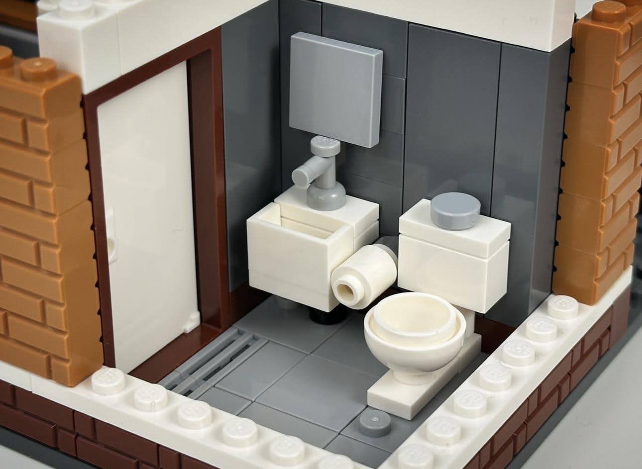 Of course, restaurants should have a toilet, so here it is. Sometimes it’s easy to forget a detail like this in a restaurant build, so I decided to dedicate a 6×6 stud space for a toilet and a sink.