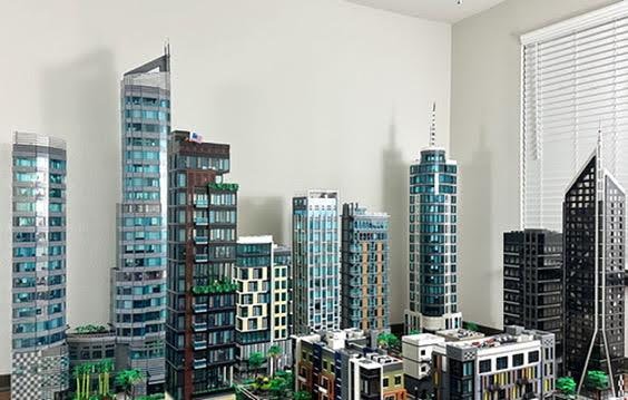 I’ve built car and house MOCs, but I’ve really focused on building and honing my MOC skills in big apartments and modular-sized skyscrapers. Wasabi District, my city layout, has been the result of nearly a decade of slowly building a super modern-style City layout, something that I think is uncommon in the Lego social media world.
