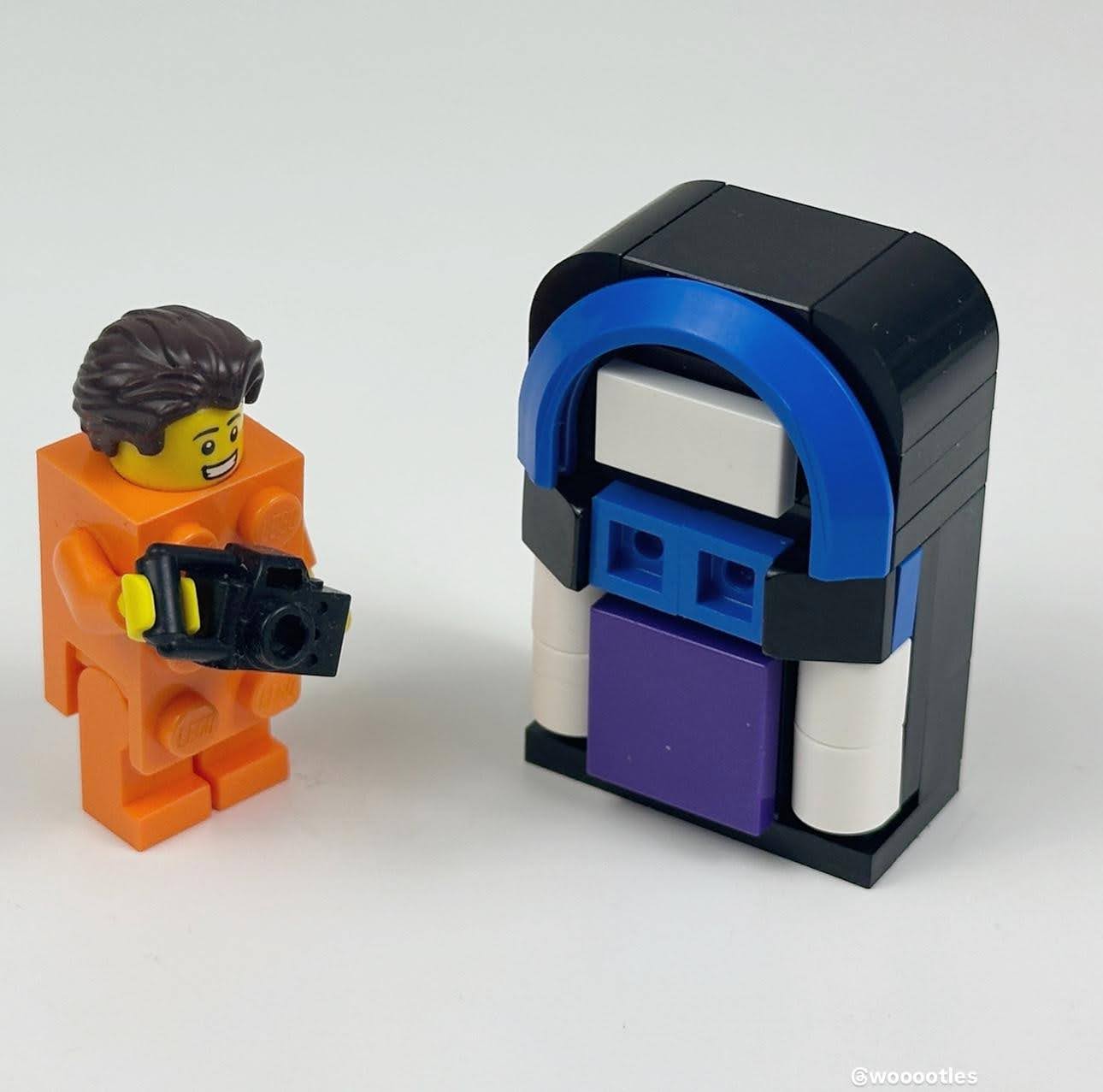 I also added a juke box—now, this is not a completely original creation, as I have googled MOCs of other minifig-scale jukeboxes. Some of the newer Waffle Houses have updated to digital-style jukeboxes, but I decided to keep mine a little more traditional looking.
