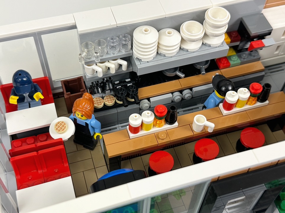 And there we have it, a LEGO Waffle House Scattered, covered, smothered, and bricked! According to my digital file, this model is made from 1,394 pieces, which means it is in fact my smallest building MOC ever. And Wasabi District has never been classier.
