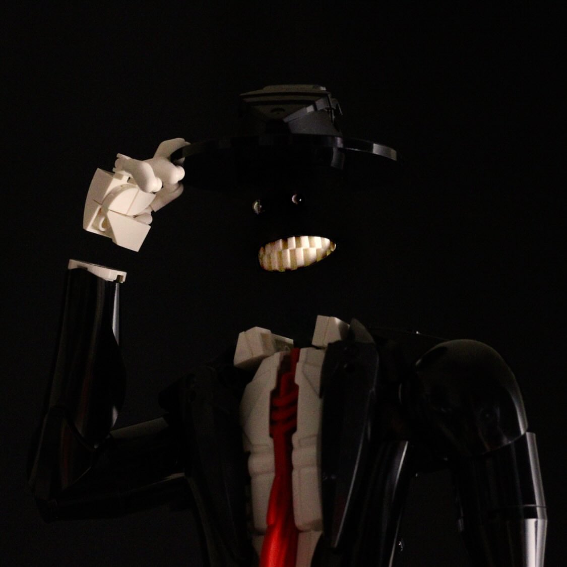 We tip our hats to this cheeky Invisible Man from Sam Gengo. Those pearly whites come from a strategically blocked out white tire and the eyes are stickers from a Technic pullback car. I’m most impressed by the shirt and tie where a flame piece fits flush between two Bionicle feet.