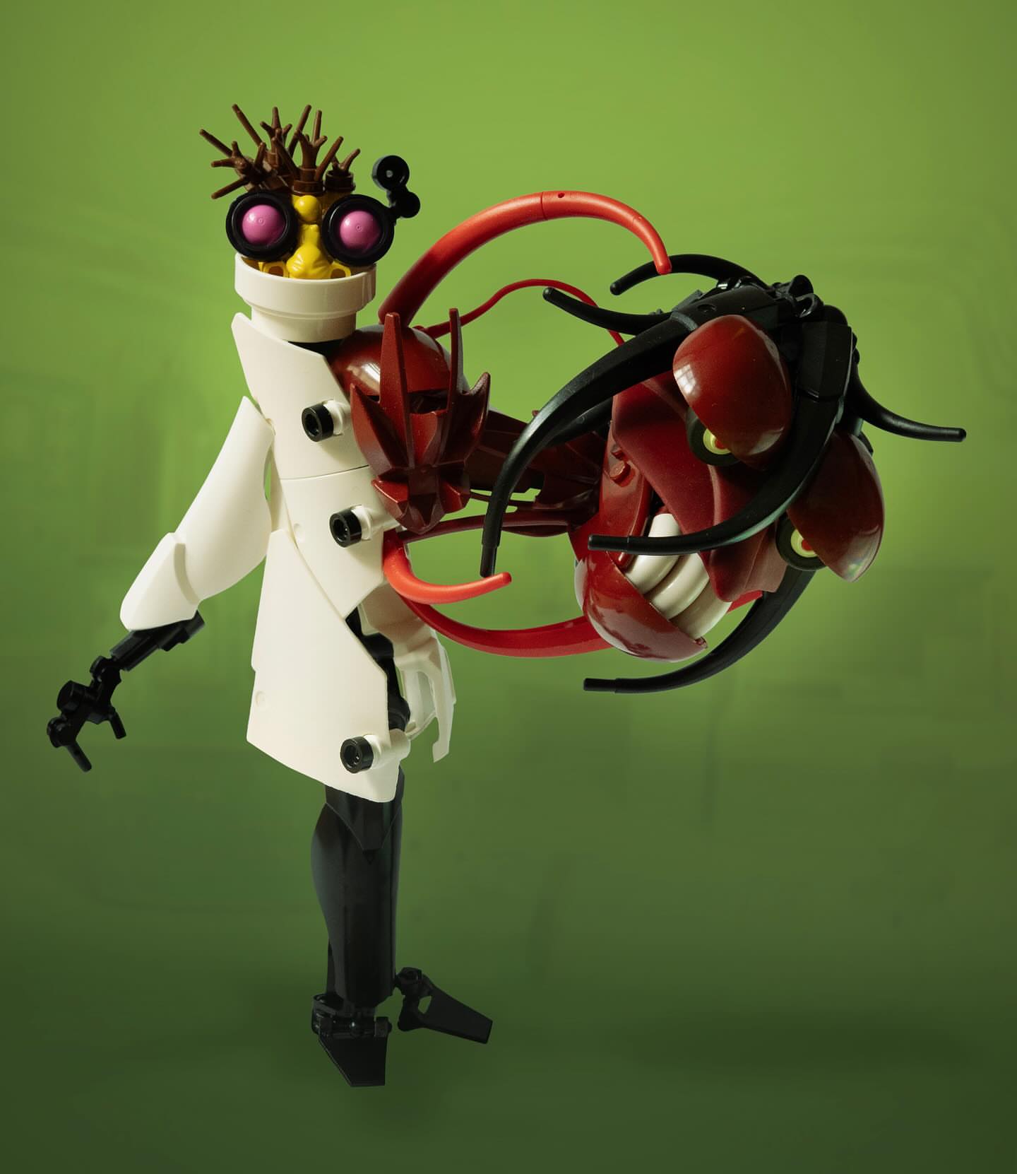 Fresh off winning the 2025 Bio-Cup, Hlebo Bas gets back to the mad NPU science with this wild and inspired take on Dr. Jekyll and Mr. Hyde. Both the good doctor and his alter ego feature wonderfully expressive faces from a fun mix of parts. Just as impressive is the sinewy sense of movement that the builder excels at.