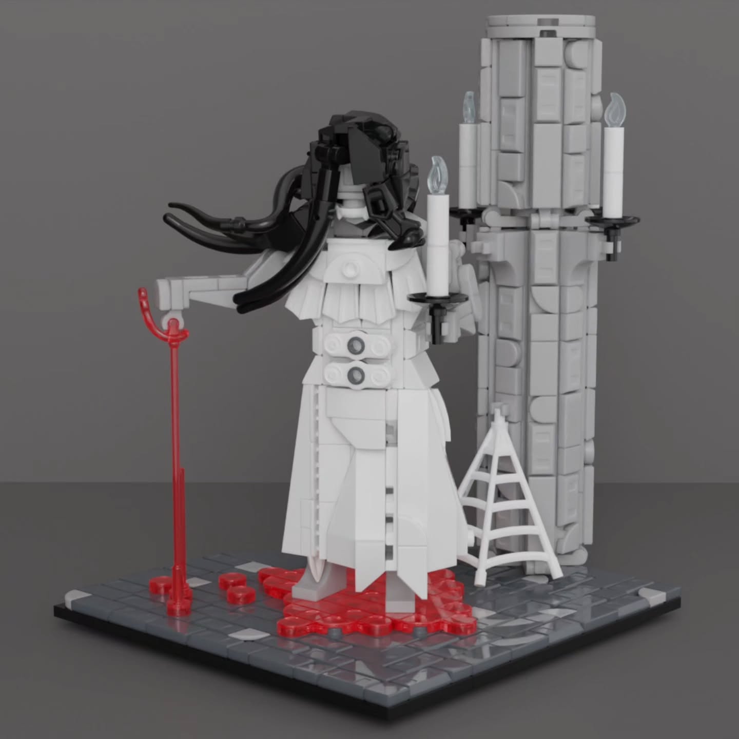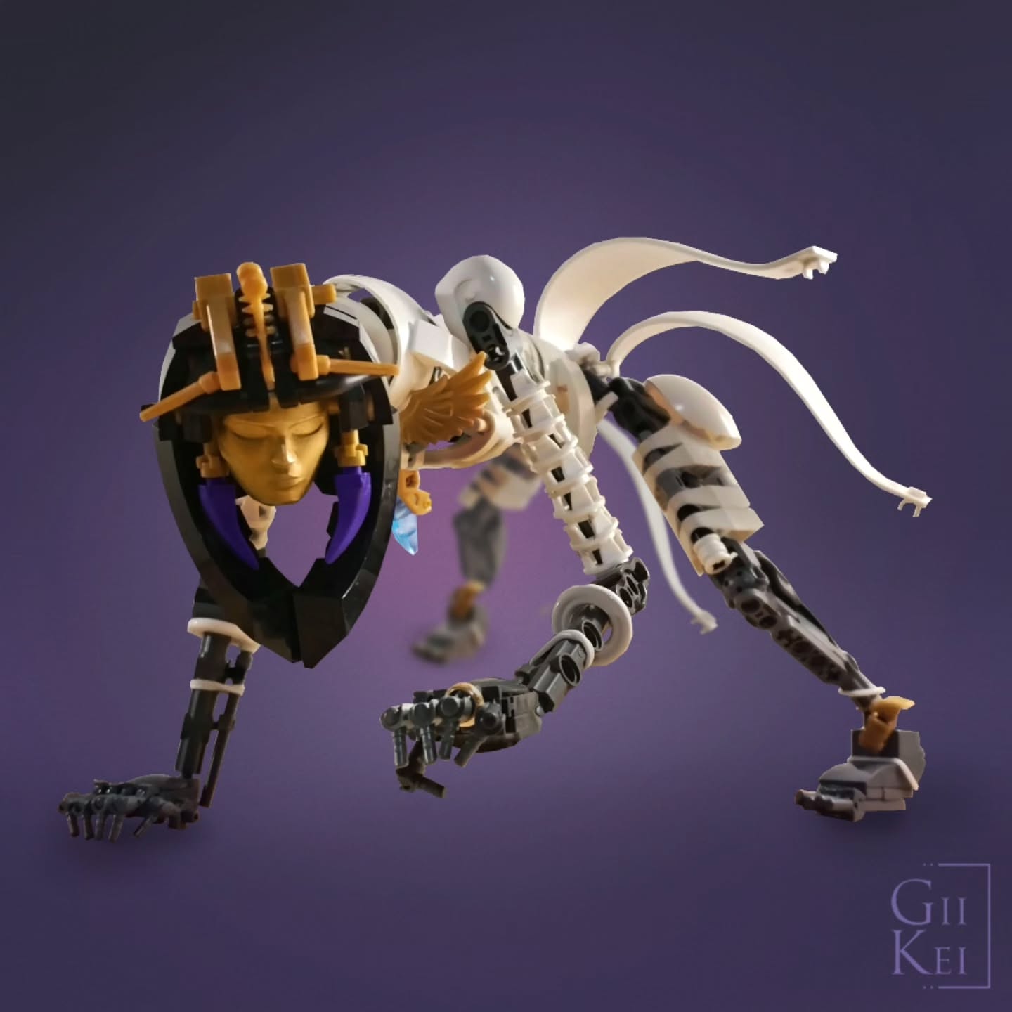 Another Bio-Cup alum, GiiKei, unearths this stunning Mummy. The delicate limbs wrapped everything from rubber bands to minifig helms to balloon panels looks phenomenal in the leonine pose, but the showstopping piece here is the buildable Rey face painted gold.