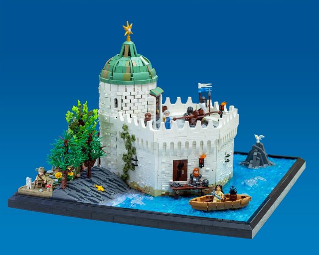 Alex (bryckland) leaves no part wasted as this fortress protects the coast. Built for the French Feodalis roleplay campaign, every part selection by Alex is a joy. From a door handle to a ballista, from mushrooms to window bars, every piece has been placed with intention. And don’t miss the color selection either from top to bottom. The fortress’s dome gives a beautiful flair of faded copper, while the base shows its wear against the battering waves.