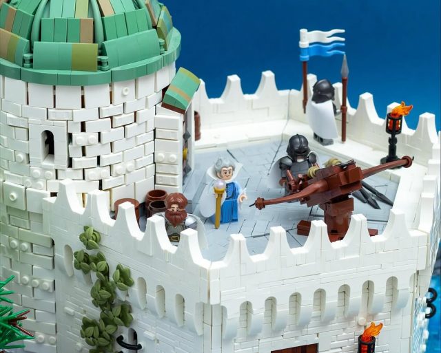 Alex also uses an approach for a classic castle feature that I had not seen before. Using the newer Brick 1×3 Half Arch back-to-back, Alex tops the fortress with great crenelation (word of the day!).