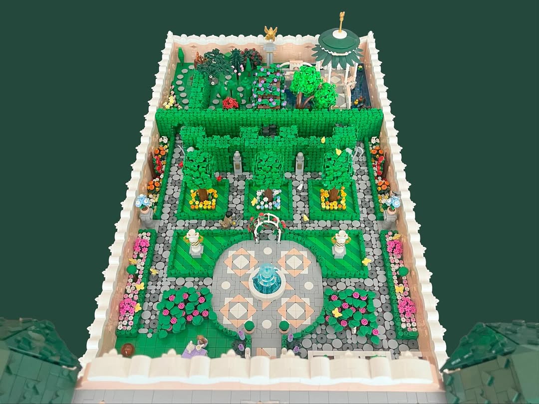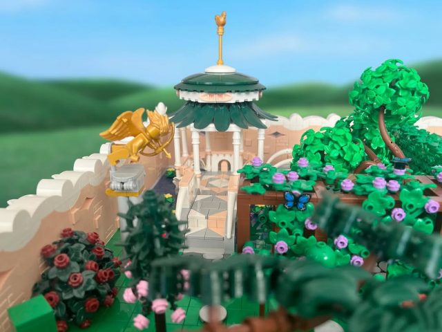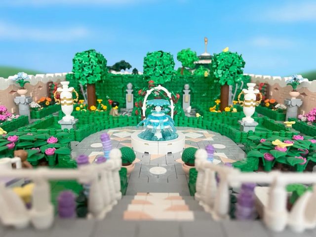 LEGO castles, both official sets and fan creations, tend to focus on medieval fortresses, but most of the royal palaces still standing in Europe are built around gardens, not garrisons. Palaces like this one from Swedish builderĀ Mikael Norling. While the builder doesn’t list a specific inspiration, the design, with the mix of light nougat and white, captures the aesthetics of 17th and 18th-century palaces inspired by the grandeur of Versailles. The Baroque touches use boomerangs, forks, ferns, flowers, and more to provide texture and detail.