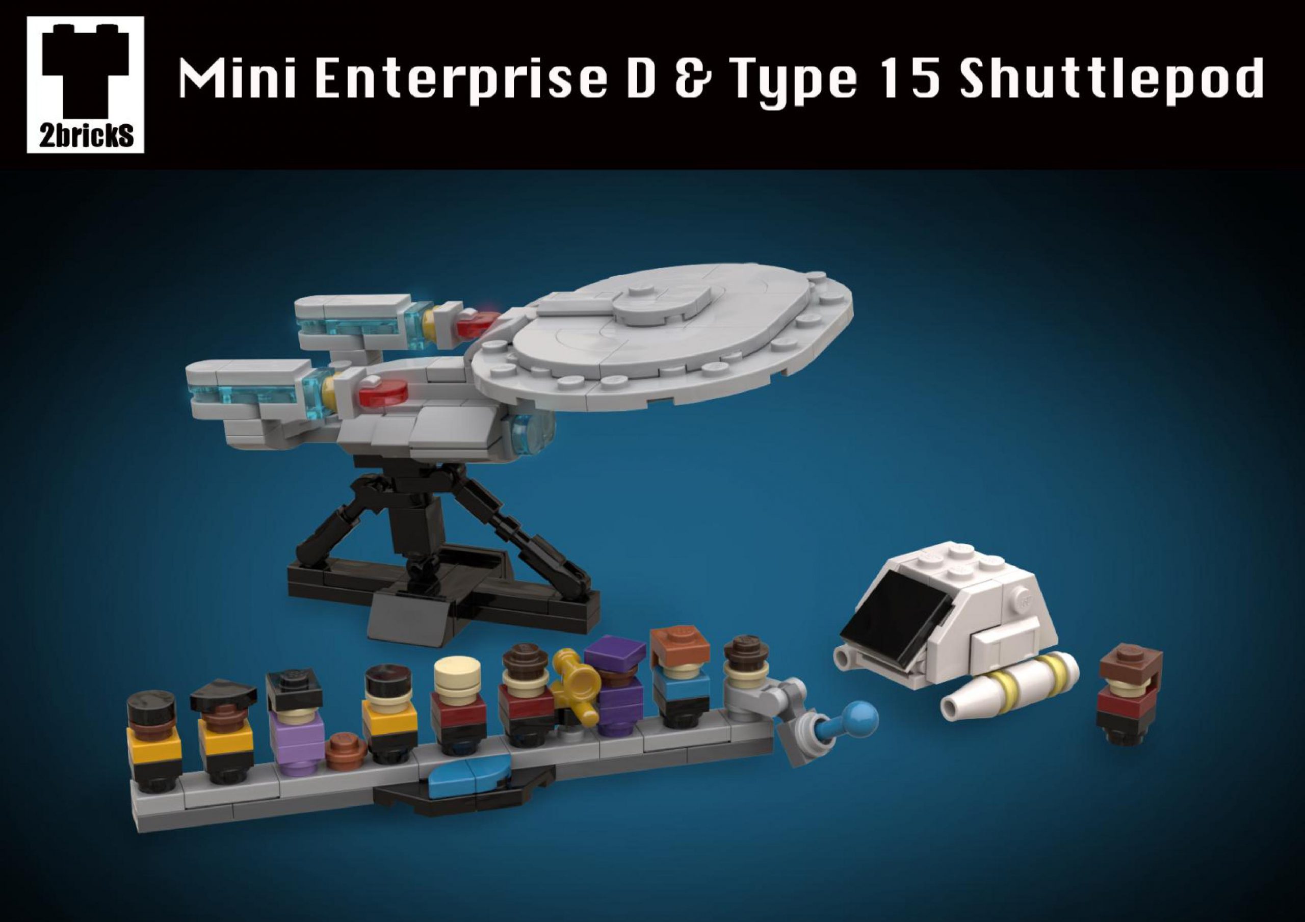 On November 28th, LEGO boldy boldly goes to the final frontier with Star Trek 10356 U.S.S. Enterprise NCC-1701-D. We found this Black Friday release to be a stellar build, albeit one that asks a lot of your wallet and shelf space. During this year of big sets and big price tags, “the one I can afford” memes have flourished, with builders sharing their microscale spins on premium releases, and the Enterprise has spawned a few impressive fan builds. We were especially taken by this version from 2Bricks, which includes the Enterprise D, shuttlepod GWP, and minifigures. 2Bricks was kind enough to share the instructions so that you can build your own mini Enterprise!