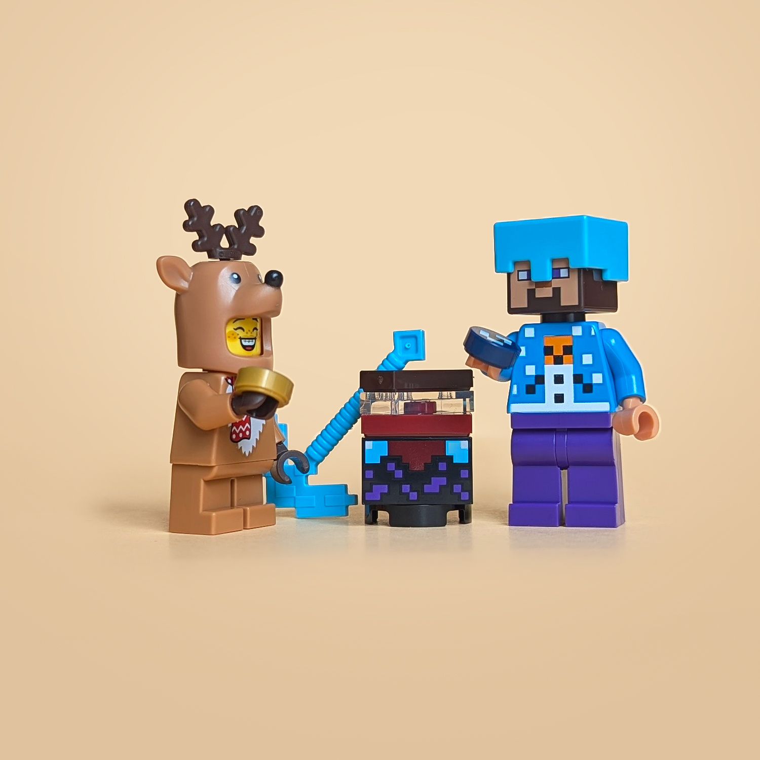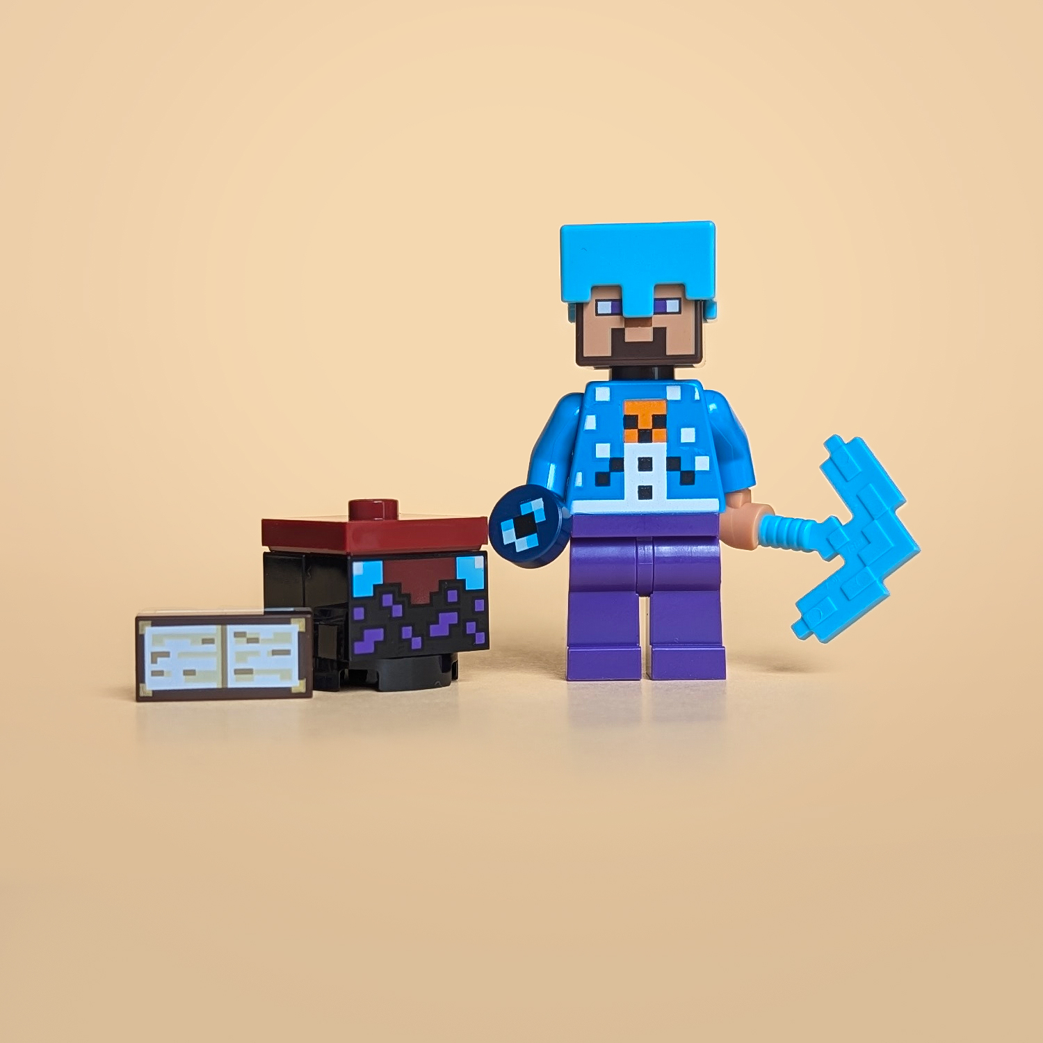 Bones: After crafting items with the crafting table from Day 3, this time we’re going to enchant them with the Enchanting Table. It’s quite a generous day, since in addition to the build (which includes two printed bricks and one printed tile) we also get a Steve minifigure with an exclusive torso representing a snow golem. It’s a very nice torso, with the bonus of having opaque white printing.