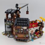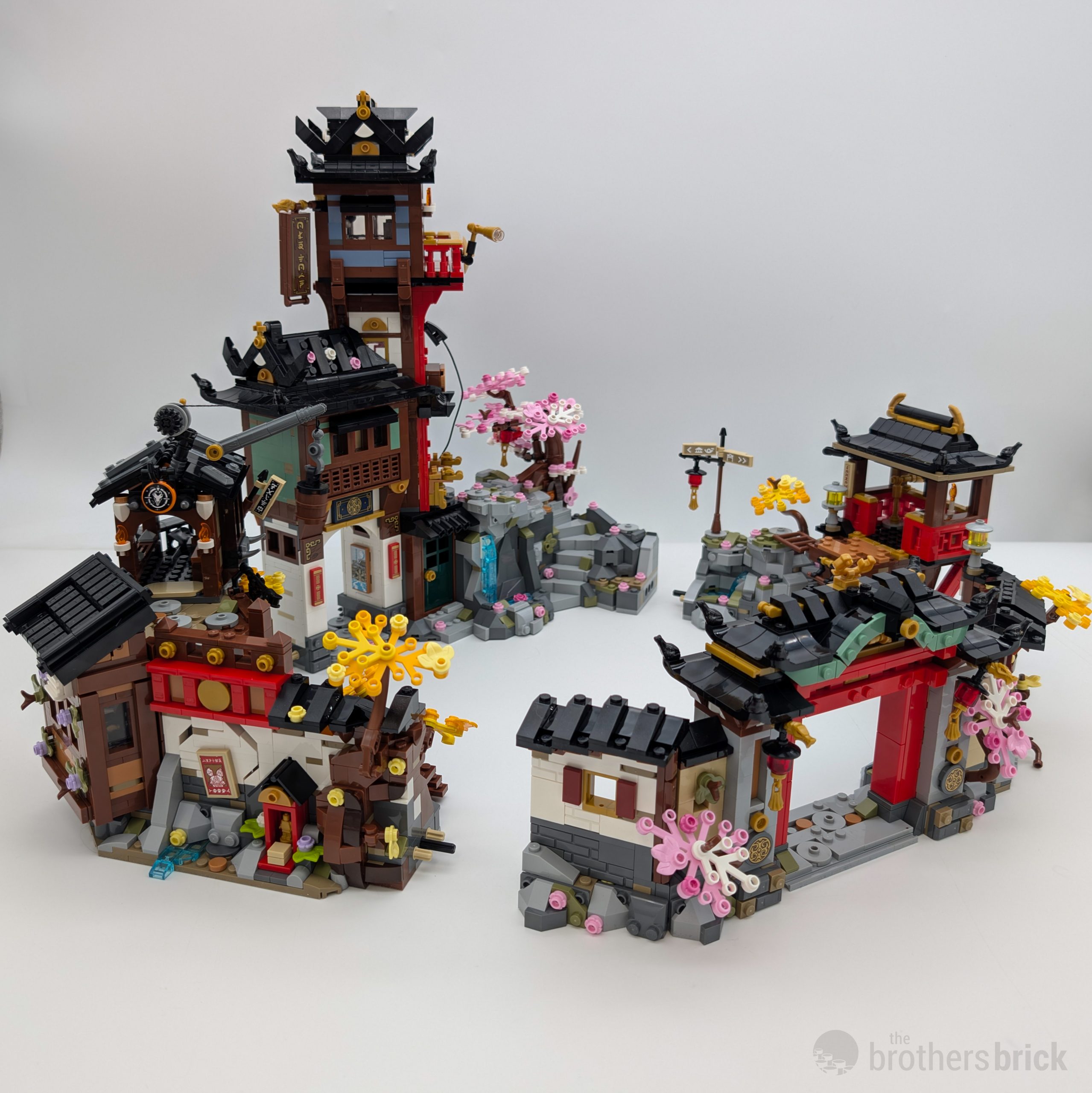 The Old Town has 4,851 pieces, making it the fourth-largest Ninjago set so far! While it’s large, it does not link up with the Ninjago City sets, as it is its own modular city that can be assembled in multiple configurations – in a loop, as seen on the front of the box, or in a line as seen on the back.
